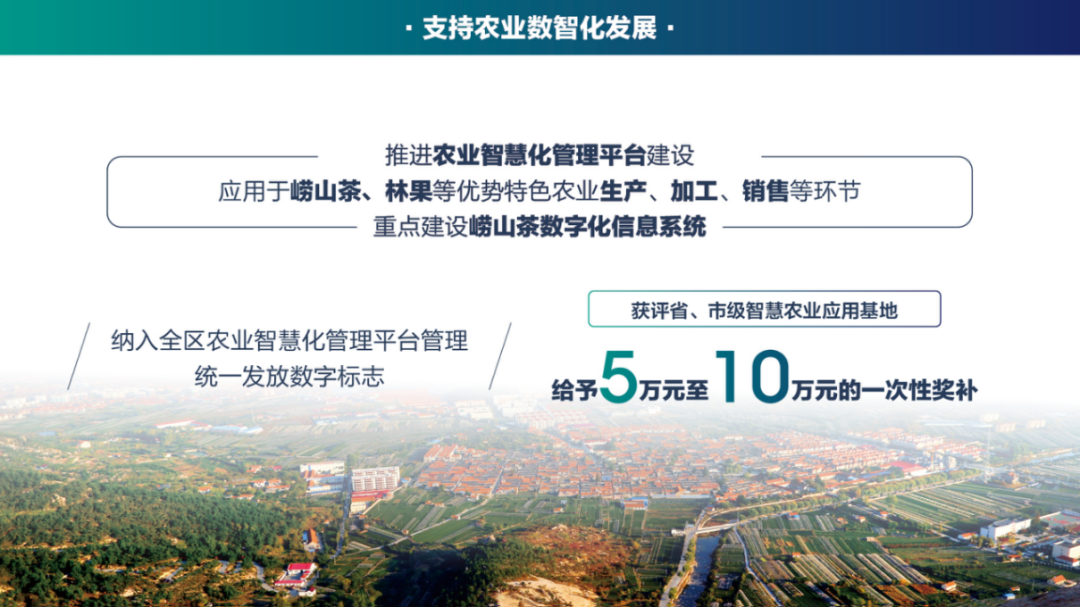 2023年是全面贯彻落实党的二十大精神的开局之年,也是加快建设农业强国的起步之年。习近平总书记指出,坚持农业农村优先发展,加快农业农村现代化,让广大农民生活芝麻开花节节高。根据国家和省市乡村振兴战略部署,崂山区研究制定了支持农业产业发展系列政策。区政协刊发“推动农业产业高质量发展扶持办法解读”,希望各位政协委员充分发挥示范带头和引领推动作用,积极对乡村振兴政策进行传达和解读,做好党和国家政策的宣传员。