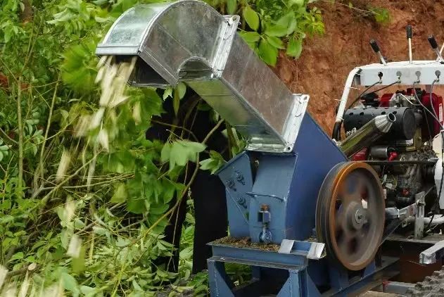 粉碎机正在粉碎油樟树叶