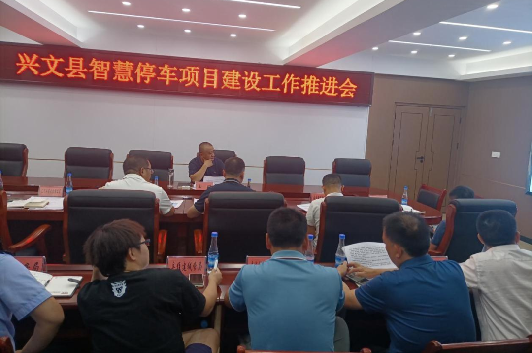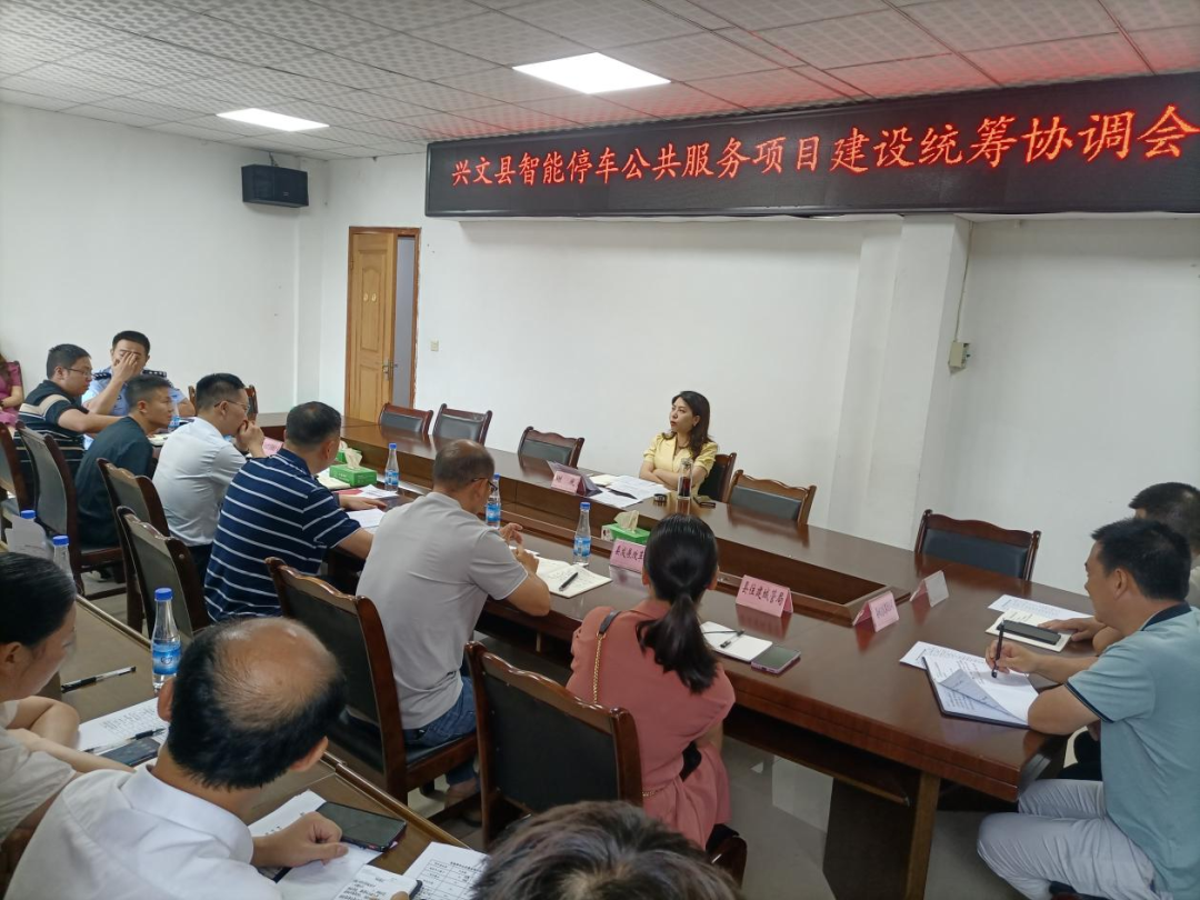县政府副县长谢庆组织召开兴文县智能停车公共服务项目建设统筹协调会,提出相关工作建议,并对项目建设进度提出要求。