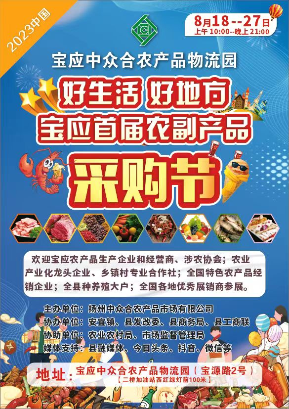 为满足城乡居民消费需求,促进商贸流通,使企业及经销商与消费者直接沟通交流,免去中间环节,达到让利销售,使广大市民及单位买到物美价廉的放心农副产品,中众合集团于成立十周年之际精心组织本次农副产品采购节特惠活动,安宜镇、县发改委、县商务局、县工商联协办。
