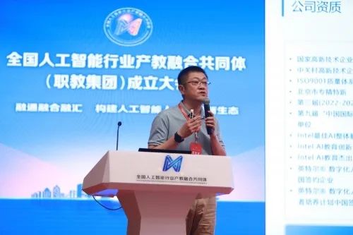 戴海竹在致辞中表示,全国人工智能行业产教融合共同体搭建行业与教育之间的桥梁,加强产业和教育之间的交流与合作,推动人工智能行业产教深度融合,实现教育链、人才链与产业链的有效衔接。将充分发挥产教融合共同体的资源聚集效应,努力形成产业链上下游资源汇聚和共享体系,为共同体成员单位提供产教融合、协同创新、人才储备等方面的支撑。