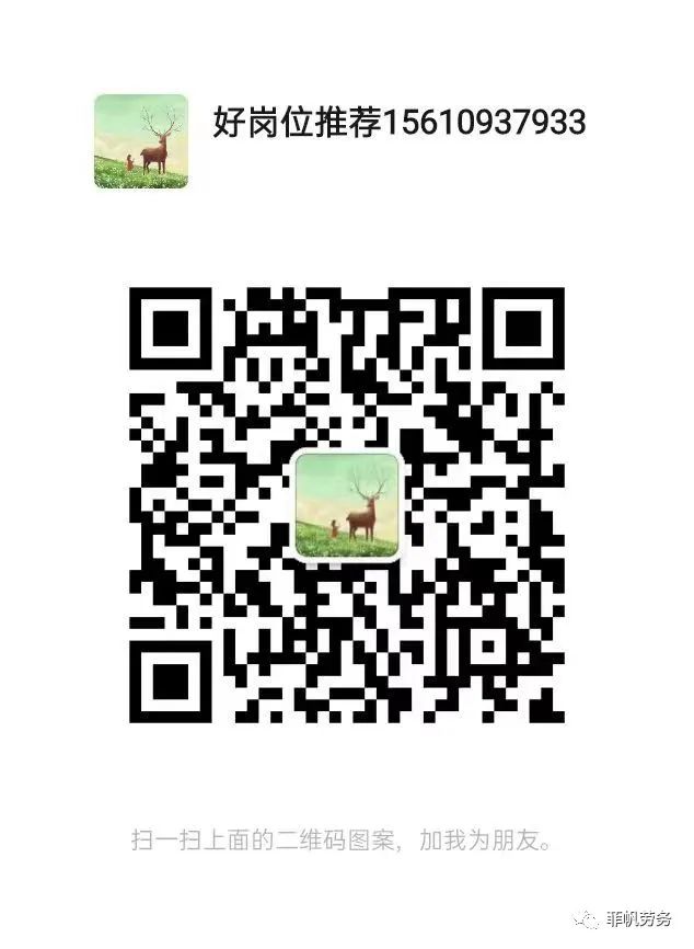 更多岗位请扫二维码加微信获得或者关注微信公众号【菲帆劳务】