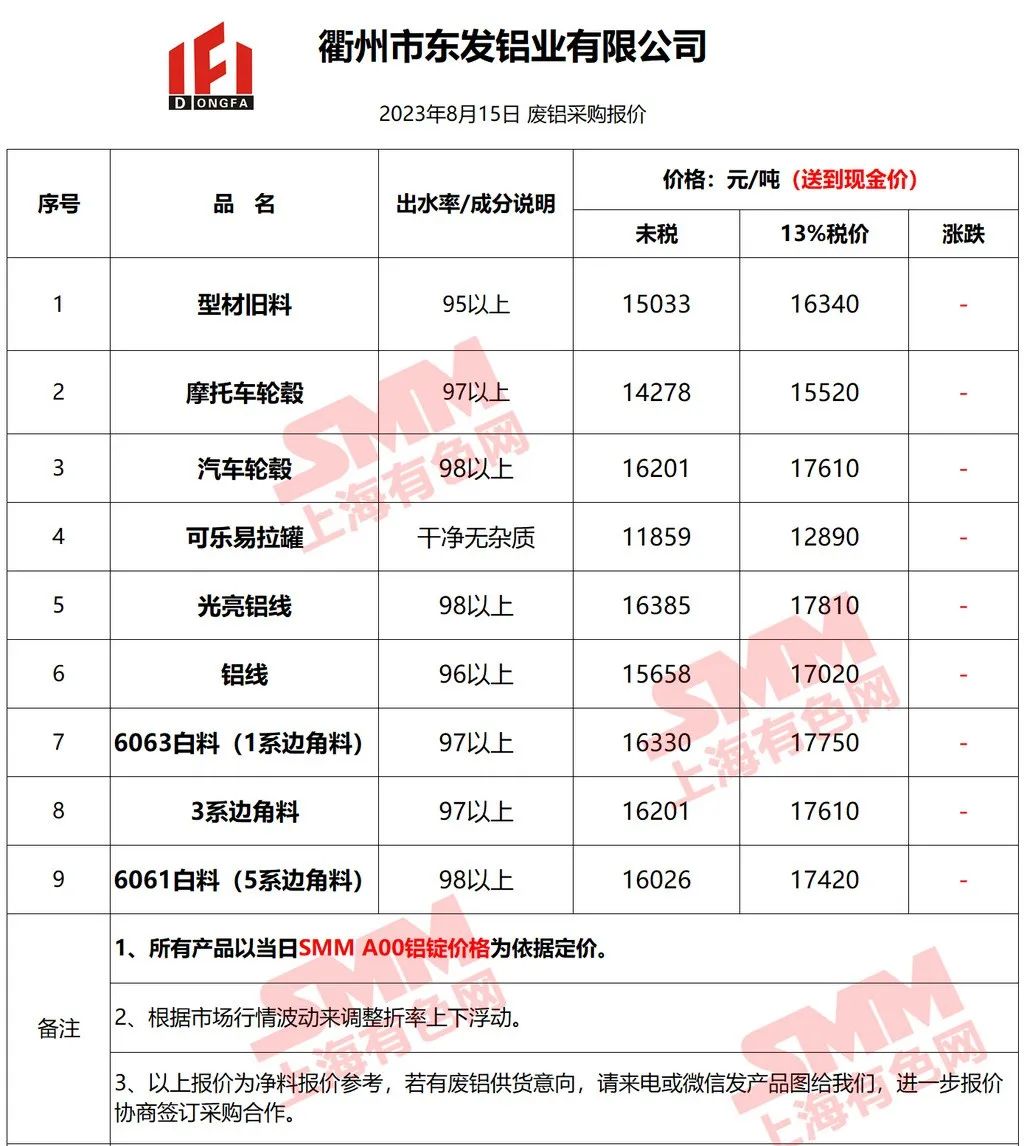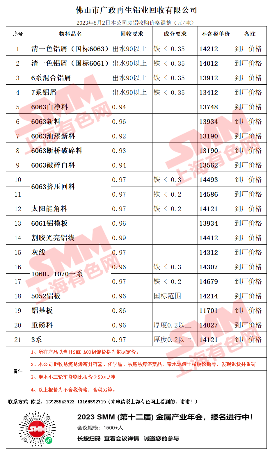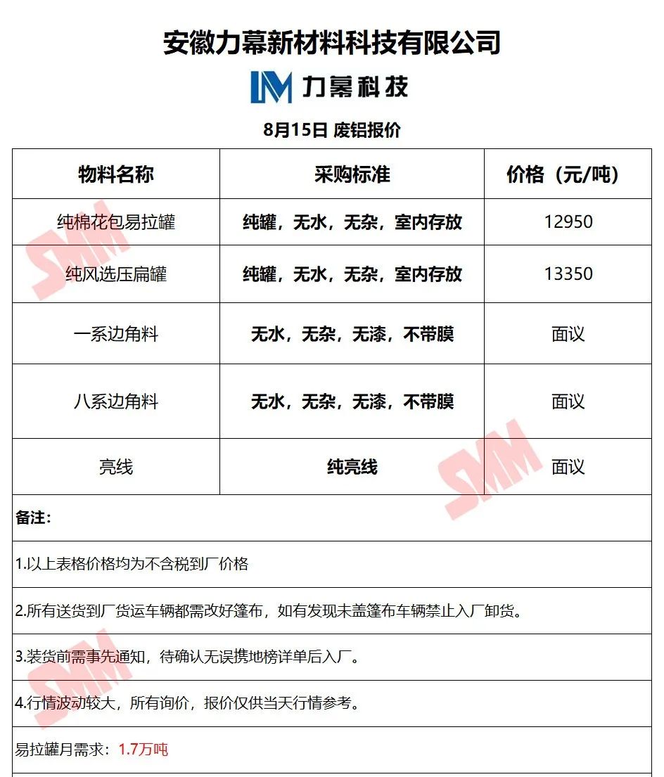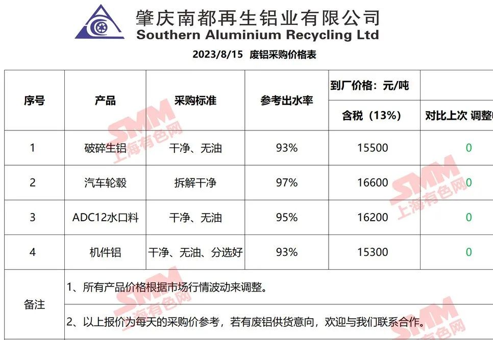 以上报价是当日截止至13:00,上海有色网(SMM)合作企业的废铝报价更新!您如需查看当日更多企业报价,欢迎下载”掌上有色“APP或扫下方二维码进入"SMM废金属万人群”