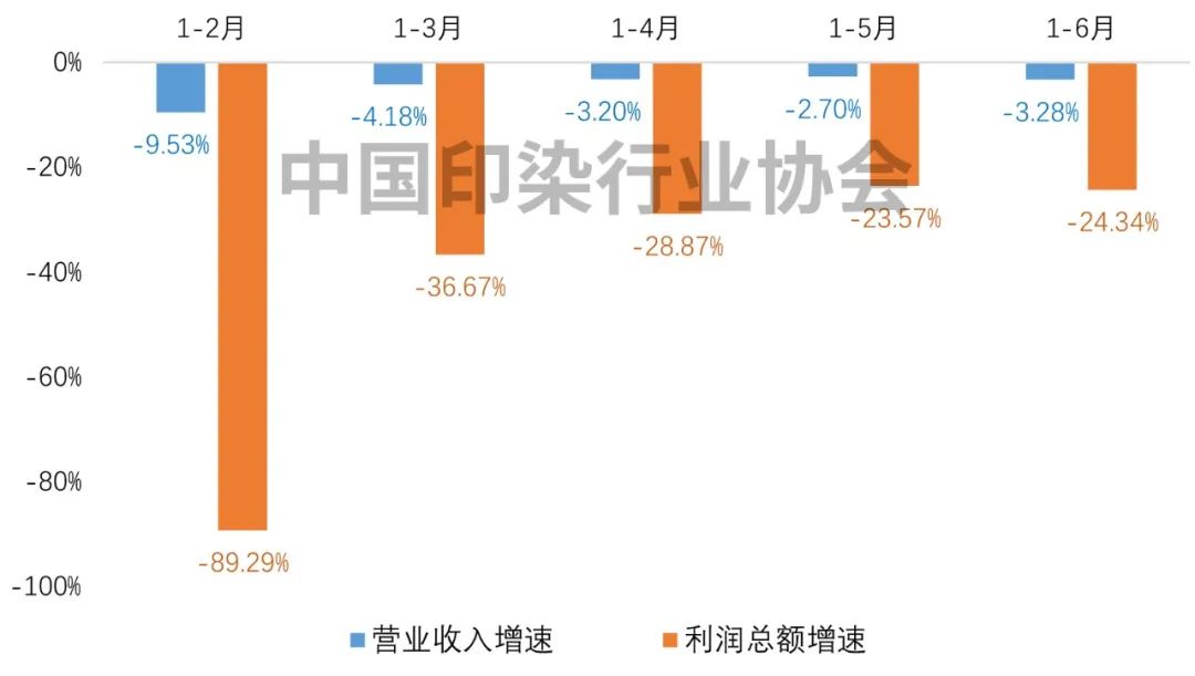 2023年上半年印染行业规模以上企业营业收入和利润总额增速变化情况