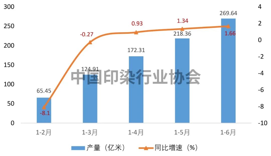 2023年上半年印染行业规模以上企业印染布产量及增速变化情况