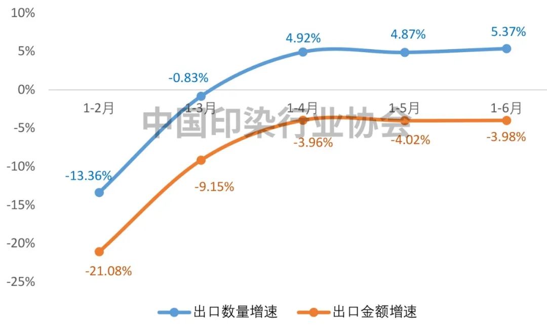 2023年上半年印染八大类产品出口增速变化情况