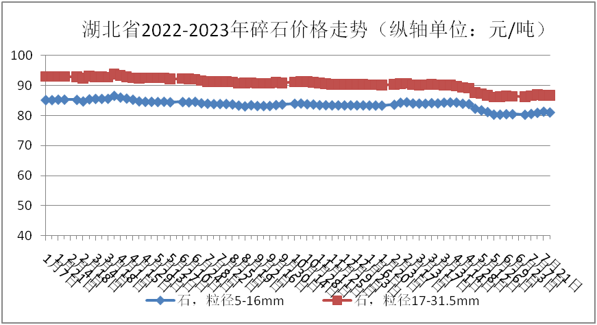 监测数据显示:7月份,碎石(粒径5-16mm)、碎石(粒径17-31.5mm)全省均价分别为81.00元/吨、86.77元/吨,