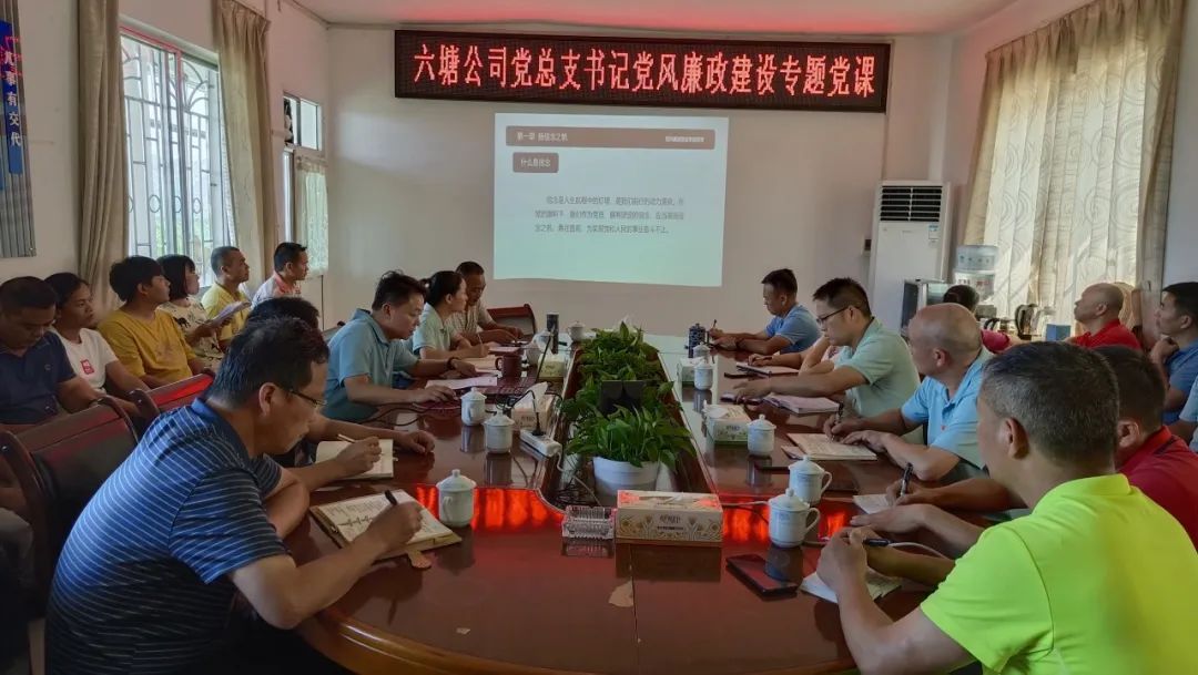 8月10日下午,六塘公司党总支于三楼会议开展党风廉政建设专题党课,党总支书记刘建寰从扬信念之帆、存敬畏之念、怀感恩之心、享知足之乐四个方面,结合古今廉政正反案例,提醒广大党员干部要从修炼内功做起,加强“敬畏、感恩、知足”内在的修养,进一步筑牢全体党员干部反腐倡廉、拒腐防变的思想防线。