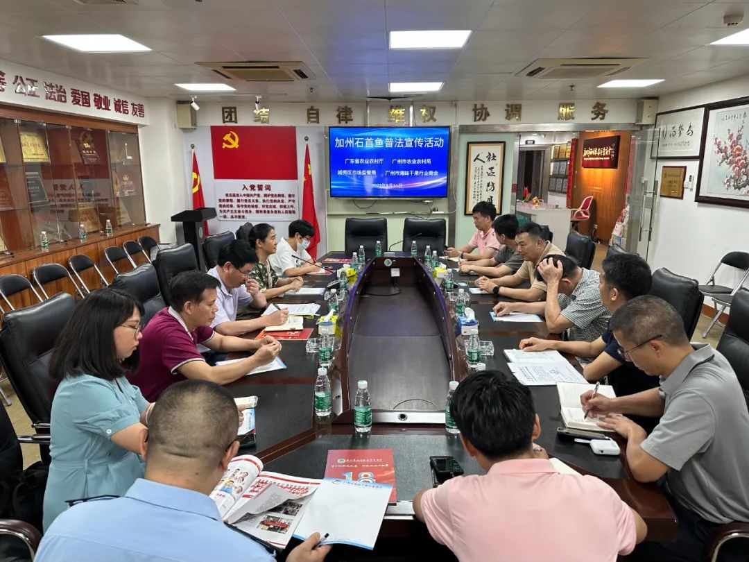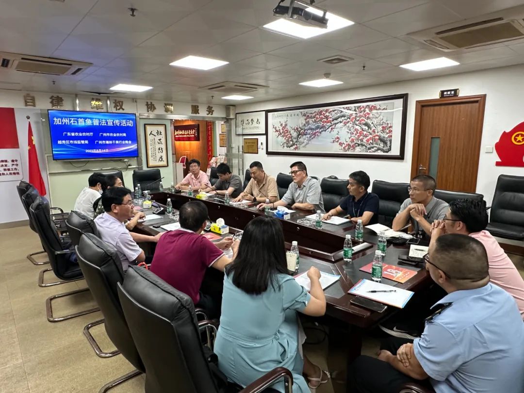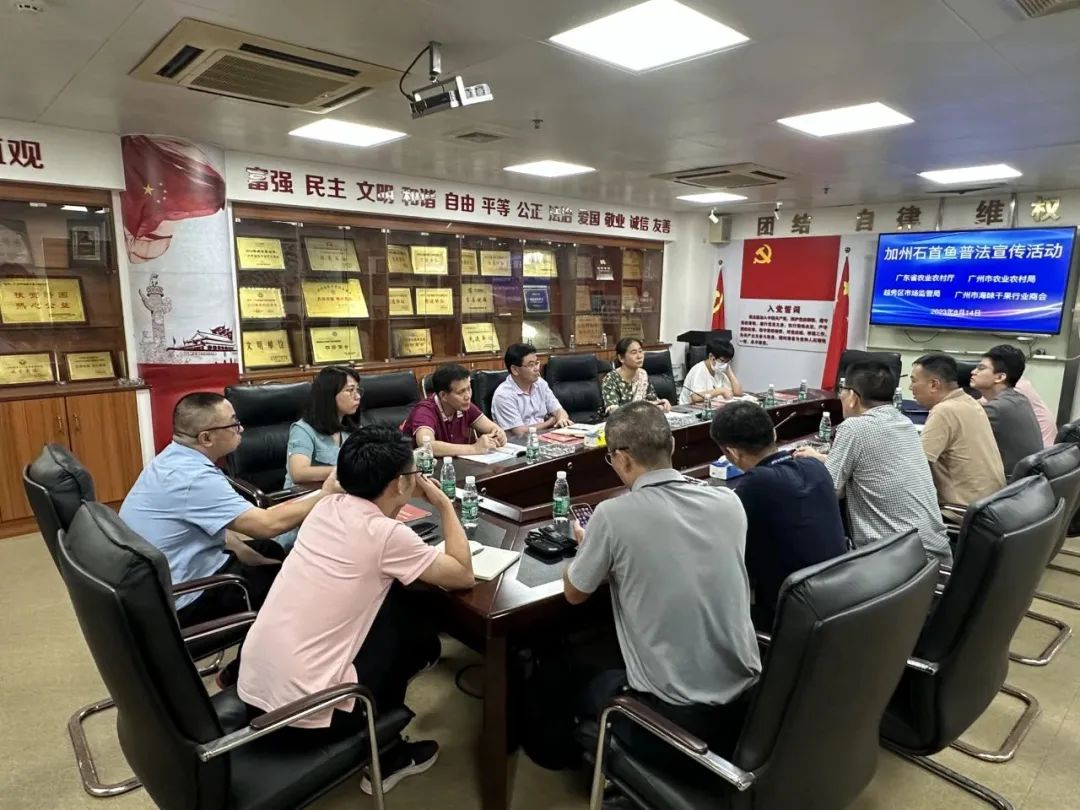 2023年8月14日,广东省农业农村厅联合广州市农业农村局、越秀区市场监督管理局在商会会议室召开加州石首鱼、海马等保护动物普法宣传活动。广东省农业农村厅渔业资源保护处一级调研员陈绮芬、科长杨计平,广州市农业农村局渔业处四级调研员彭声高,广州市海洋综合执法支队海洋监察处四级高级主办农向春,越秀区市场监督管理局农业科科长李兆亚、副科长蔡天城,人民市场监督管理所一级行政执法员杨寰,商会田纯青会长、曾瑞常务副会长、叶海斌副会长、陈淑民秘书长、姚泽勇副秘书长等参加活动。