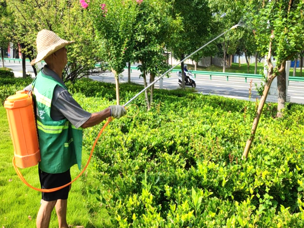 随着夏季气温的不断升高,园林植物进入旺盛的生长期,为保持我街园林绿化整齐美观,园艺公司开展“除草+养护”专项行动,对辖区绿化带、草坪等进行修剪、整型。