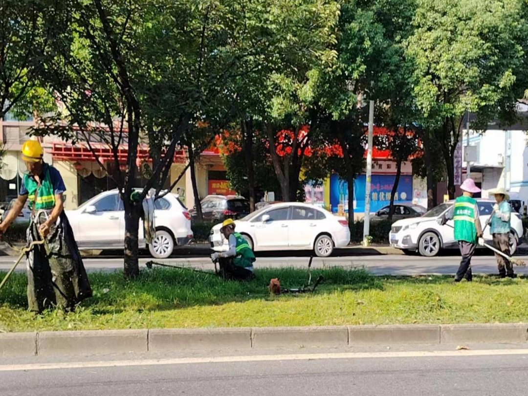 修剪现场,工作人员充分发扬不怕脏、不怕苦、不怕累的奉献精神,埋头苦干,根据植物实际生长情况,科学制定杂草清除方式及频次,采取“人机配合、杂草拔除、修剪树枝、集中清运”相结合的方式,严把作业标准,用切实有效的行动除草护绿。同时,做到园林垃圾“随产随清”,为植株提供了良好生长环境、有效改善了绿化带整洁度、美化了居民生活环境。