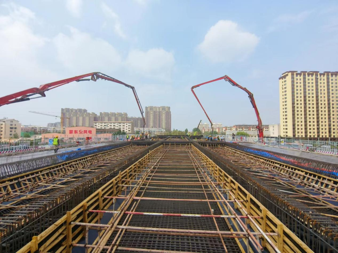 2023年8月8日,随着最后一方混凝土入模,赤峰中环路土建二标项目部2023年度首联预应力砼现浇箱梁第一次顺利完成浇筑,标志着项目部2023年度上部结构现浇箱梁施工正式拉开序幕,为实现年度建设目标任务奠定良好基础。