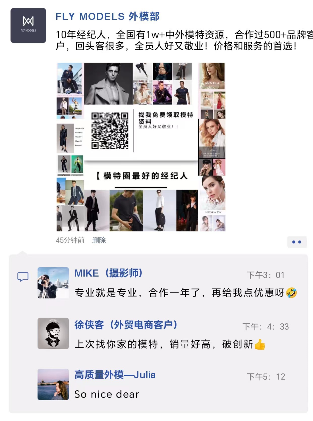 长按二维码,添加模特经纪人微信