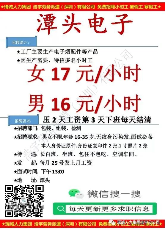 【08月16日 星期三面试的企业】高工价,长白班 ,包吃住日结,周结,月结任你选!!!