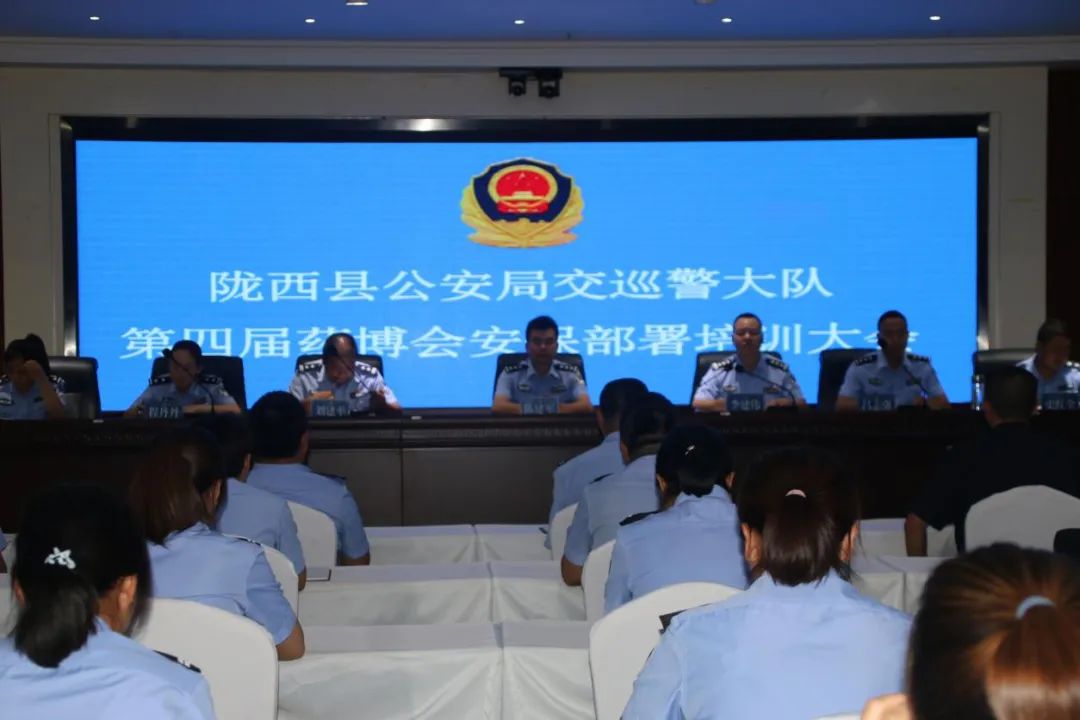 为进一步做好第四届中国(甘肃)中医药产业博览会交通安保各项工作,全面展示陇西公安交警良好形象和优秀作风,确保药博会期间全县道路交通安全形势持续平稳。8月14日晚,陇西县公安局交警大队按照县局党委要求,在六楼会议室召开交通安保工作专题培训会议。培训会议由大队教导员张建军主持,大队班子成员、全体民辅警、职工参加培训。