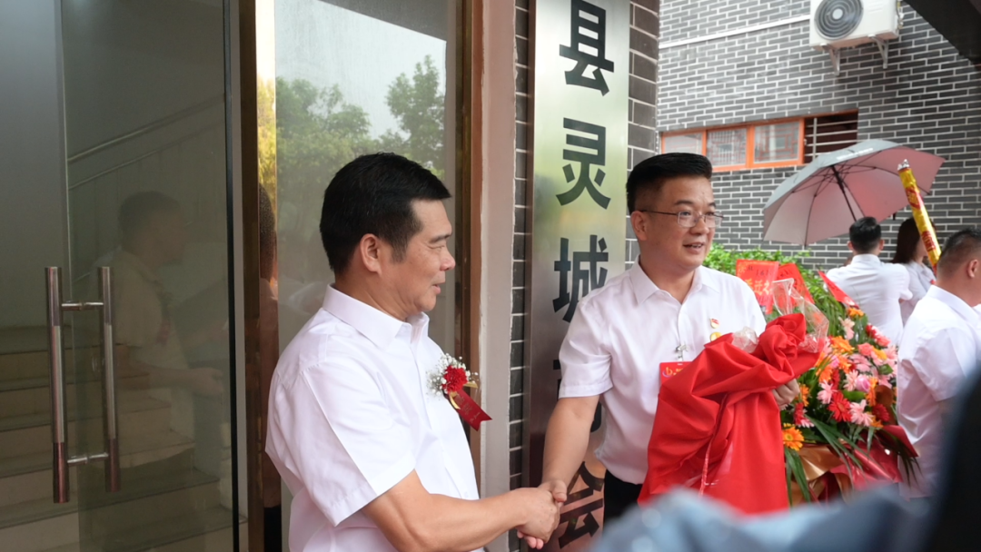 会后,与会人员在灵城商会办公新址举行商会办公新址乔迁揭牌仪式。
