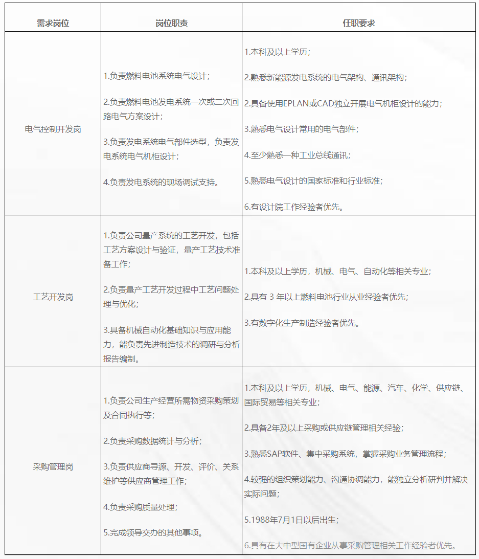 东方电气(成都)氢燃料电池科技有限公司因工作需要,面向社会及集团内部公开招聘以下专业人员。