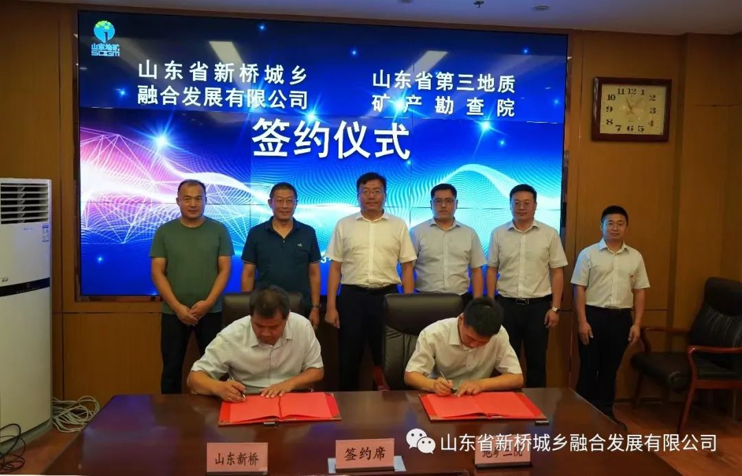 2023年8月15日,山东新桥与山东省第三地质矿产勘查院战略合作协议签订仪式在烟台举行。省第三地质矿产勘查院党委书记、院长江国会,山东新桥总经理王少鹏等出席签约仪式并座谈交流。