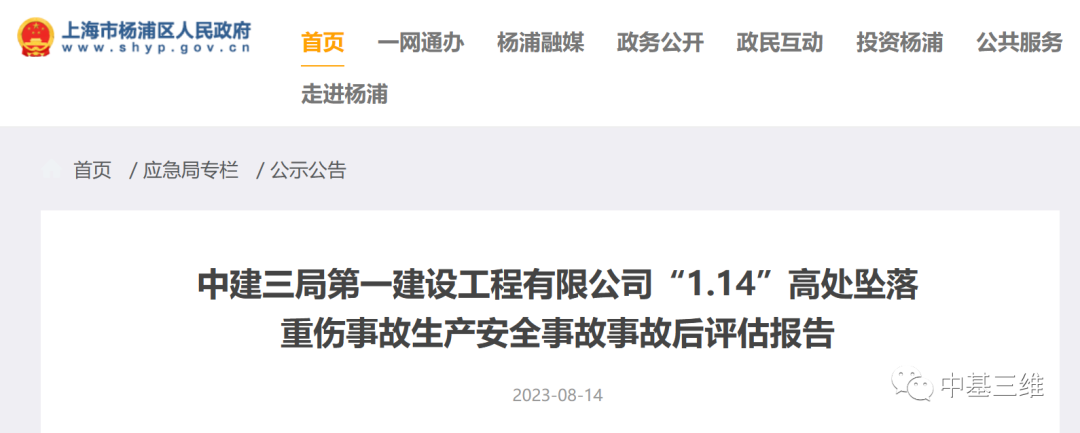 2021年1月14日,在新江湾城F区F1-D地块商办项目内,中建三局第一建设工程有限公司(以下简称中建三局一公司)现场工人从基坑返回地面的过程中发生高处坠落事故,造成二人重伤。