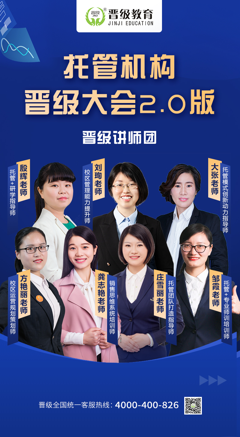 刚投入校外托管机构的没有经验的校长分享到:有了晋级大会的支持,让我对未来前进的道路更明晰了,对目前所需要的做的更明确了,根治晋级走就可以了,尤其是在带班上,有双师课堂给我们底气,让带班老师更轻松,线上讲课,线下辅导让孩子学起来也更轻松,更能赢得家长的好评,找到了一个回去之后能立刻执行,立刻落地,让校区孩子受益的同时也解放双手的项目。