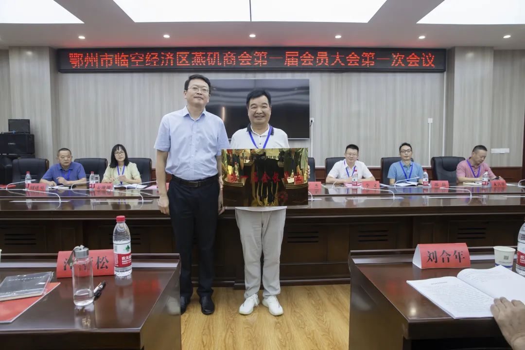 鄂州市工商联党组成员、副主席、秘书长盛以茂、临空集团有限公司副总经理、燕矶镇党委书记何飞、燕矶镇党委副书记李义出席会议。