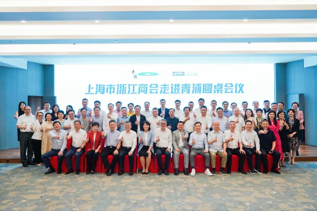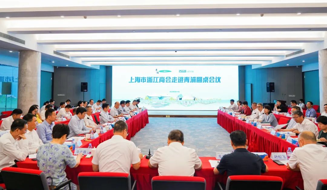 8月14日下午,上海市浙江商会会长王均金、轮值会长叶林富带队走进青浦,青浦区委书记徐建,区委副书记、区长杨小菁,区委副书记张权权,区委常委、统战部部长张得志,区委常委、副区长孙挺,区委常委、副区长金俊峰等四十多位商会企业家在熊猫广场座谈交流,探讨“浙商如何参与青浦发展”“规划布局未来产业”等话题,鼓励浙商企业和浙商企业家积极参与青浦经济社会建设,共谋高质量发展。
