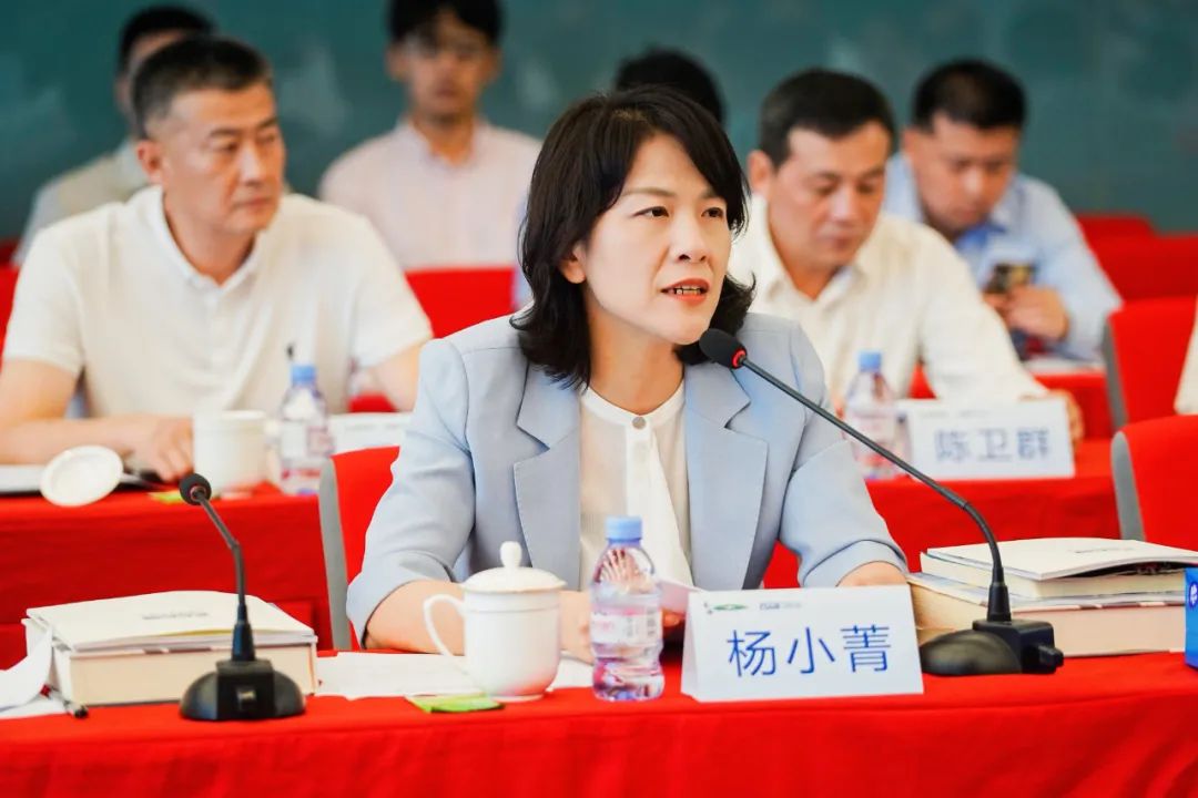 杨小菁向企业家介绍青浦发展情况,并欢迎广大浙商朋友走进青浦、投资青浦、创业青浦,共同谱写高质量发展新篇章。