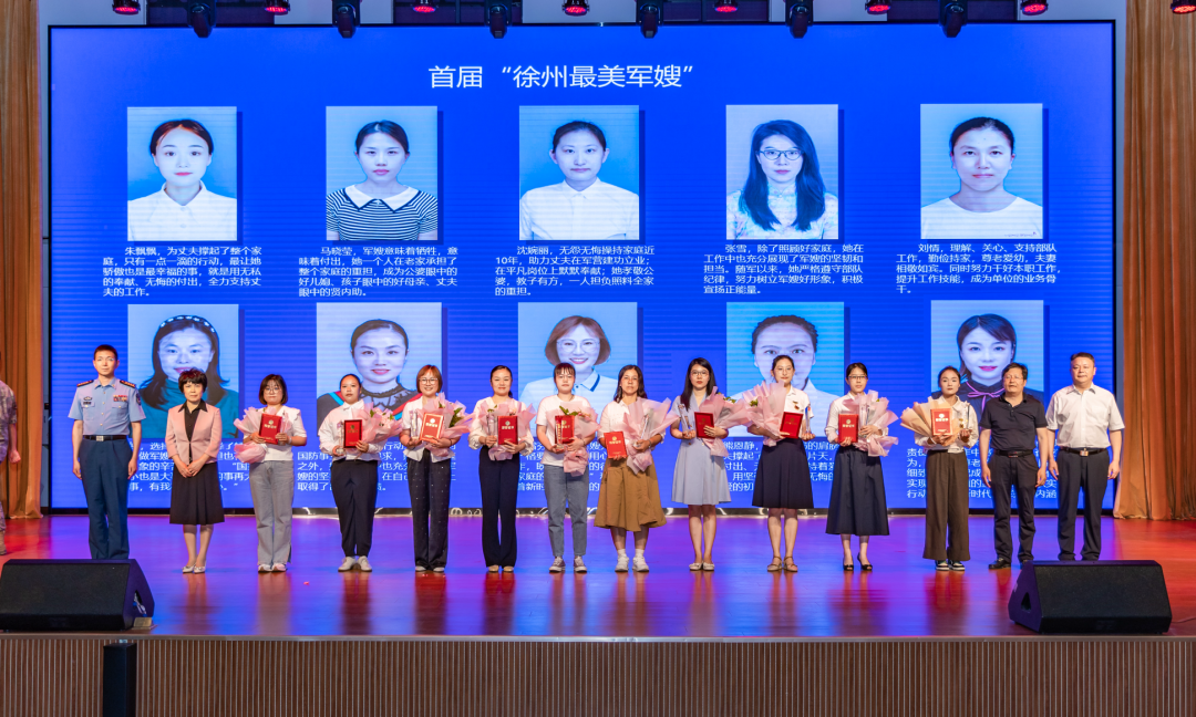 朱飘飘、马晓莹、沈婉丽、张雪、刘情、李婷、房萌、胡雪芬、熊恩静、左安娜共10人被授予徐州市首届“最美军嫂”称号。徐州市退役军人事务局党委书记、局长赵忠德介绍,“最美拥军人物”和“最美军嫂”先进事迹感人至深,通过此次颁奖活动,激励全市各界传承双拥优良传统,投身拥军优属事业,不断掀起学习“最美”、争当“最美”,关心国防、尊崇军人的新热潮,为全面推进中国式现代化徐州新实践,凝聚军政军民团结的强大合力。“ 这些年的不容易,我怎能告诉你;有过多少叹息,也有多少挺立;长夜的那串泪滴,我怎能留给你……”颁奖活动中,还穿插了歌舞《我是运河一滴水》、女生独唱《妻子》、单口快板《看升旗》、徐州琴书《认娘》等精彩纷呈的文艺节目,真挚感人、催人奋进的文艺表演,将颁奖活动一次次推向了高潮。军民同心共奋进,鱼水情深在彭城。据悉,近几年来,徐州市高起点、全方位、多层次开展双拥工作,不断书写双拥工作新篇章。目前,全市以延安双拥运动80周年为新起点,赓续红色血脉,弘扬双拥传统,厚植爱国情怀。“没有人民子弟兵的吃苦奉献,就没有老百姓的和平生活,爱国拥军是我最快乐的事,只要活着,我就要一直坚持做下去……”在颁奖活动现场,获评“最美拥军人物”74岁许友英激动地说会前,徐州市妇联主席刘红梅等领导与十位军嫂举行座谈并合影留念。