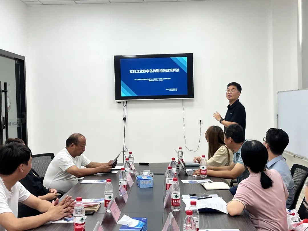 区经信局数字经济科业务负责人介绍了企业实施数字化改造能享受到省市区各级的政策以及申报和验收的各项流程,包括物联网项目、数字化车间、未来工厂等方面补助政策和奖励政策。