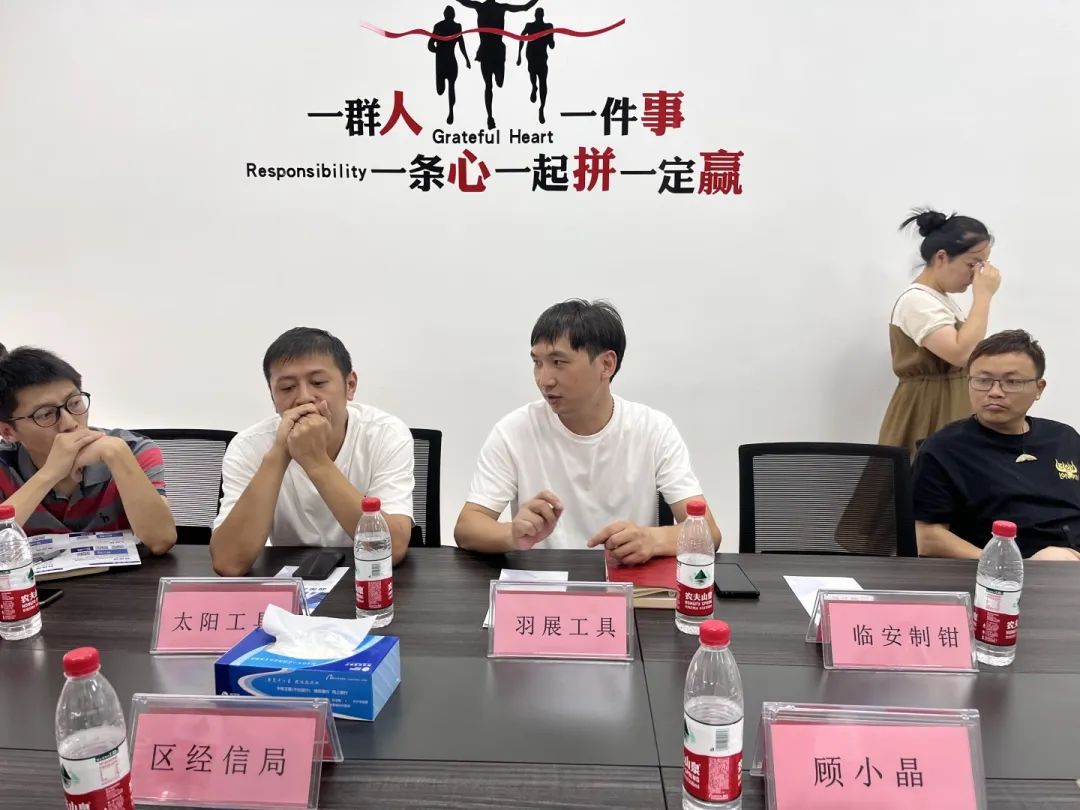 8月15日下午,区经信局联合局团委、区“三服务”办在太阳羽展工具公司专门召开“数字赋能五金工具产业升级”现场会,太阳工具、鹏达五金等8家有意向的企业负责人参会,经信局党委委员、副局长顾小晶到会主持。