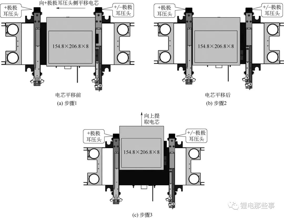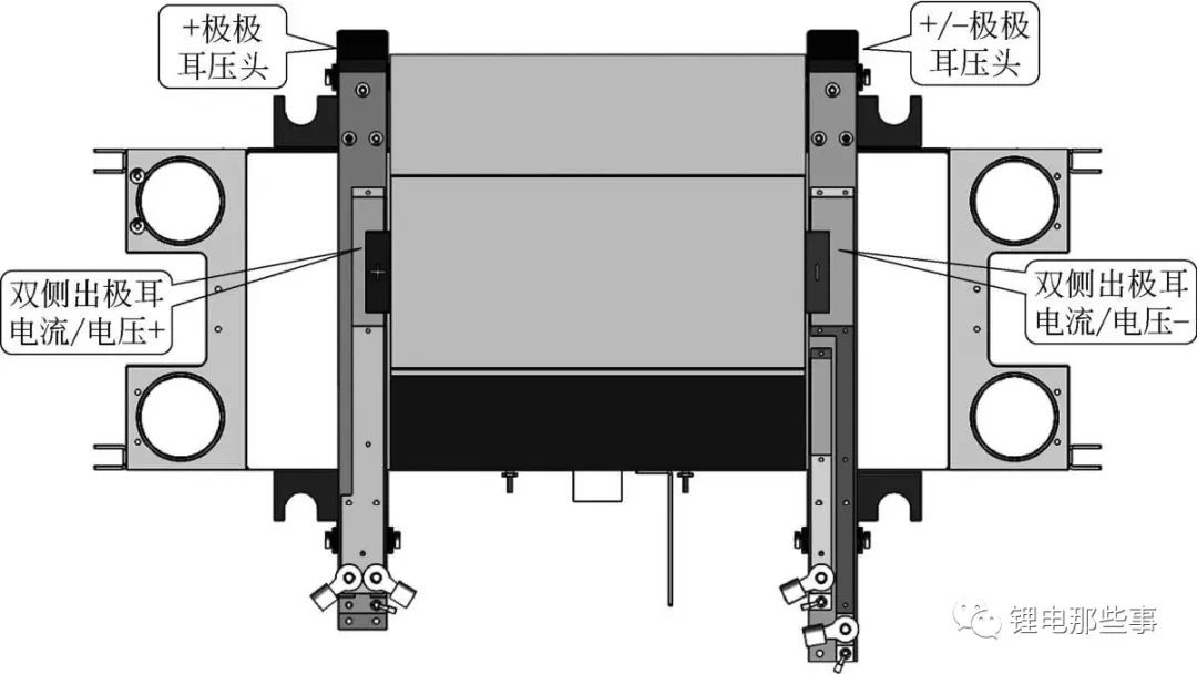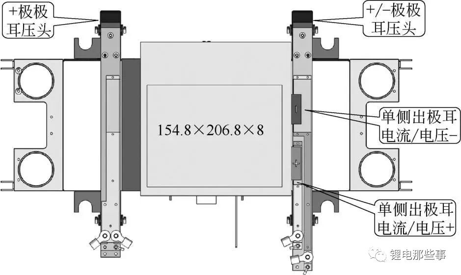 ①极耳调节机构:设备极耳夹紧机构,在电池长度方向两侧可调,尾部的摇杆轻松调整,如图5所示。