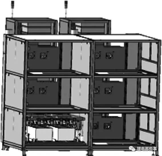 软包化成设备是在高温加压的环境下对电池进行充电,设备由充电电源单元、高温加压单元、电气控制单元和后台监控软件等组成,下面分别对设备各部分进行简要介绍。图2为软包化成设备示意图。