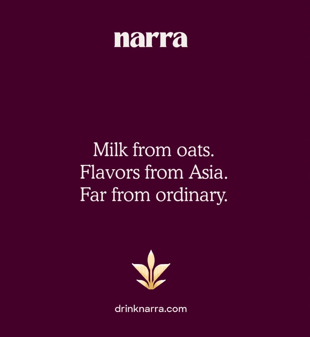 Narra 的RTD 饮料系列由菲律宾兄弟姐妹 Victoria Reyes 和 Miggy Reyes 创立,采用经典的亚洲奶茶,并用燕麦奶等现代风味进行更新,并且不含精制糖。Narra 的产品系列包括红茶、乌龙茶和草莓抹茶,它们均不含转基因成分且是素食主义者。