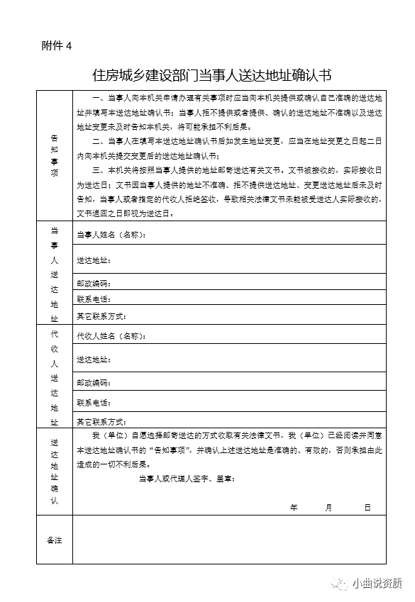 3.《住房城乡建设部门当事人送达地址确认书》(见附件4);
