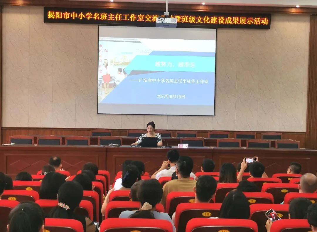 根据《关于做好市级中小学名教师、名校(园)长、名班主任工作室管理有关工作的通知》(揭市教[2022]20号)精神,广东省中小学名班主任李桂华工作室全体成员于8月14-15日参加市教育局举办的“揭阳市名班主任工作室中期交流研讨培训活动暨班级文化建设成果展示”活动。本次研修活动旨在加强班级文化建设,凝炼班主任工作特色,打造名班主任工作室特色品牌,服务校园文化建设,助力教育高质量发展。