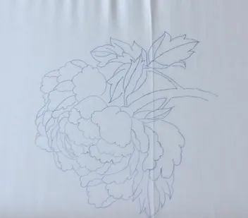 上稿是粤绣行业的术语,是刺绣前期最重要的工序,就是按图稿进行沟稿。在当代,广绣最常用的上稿方式是电脑喷图,通过电脑对画稿进行二次设计后,直接喷染在刺绣的材料上。这样既省时省工,又可以将画稿更准确、更精细地描绘出来。