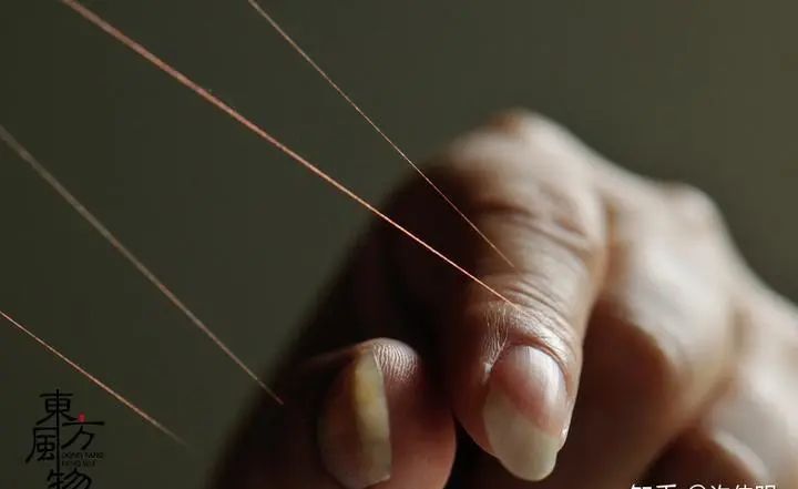 选线也称配线,将近期需要使用的各类色线摆在前面,以便供施绣者挑选。一种颜色常常要选择多个色阶才可以。在丝绒线的选配过程中蕴藏深厚的智慧,对审美的探究能力要求更是难上加难,行内人皆需要长时间的锻炼,行外人或许难以想象。就配线种类来说,有选头发马鬃做为绣线的,在明代潮绣中就有孔雀毛织为云肩和补子的案例。“凡线一绞大约三十根,凡一根必两绒。掰时分两绒,而紧攘其端寸合而为一,以入穿孔。”