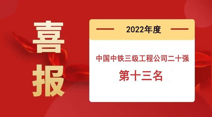 (20强入选单位是中国中铁三级工程公司的标杆,是中国中铁核心竞争力的综合体现和企业核心功能的重要支撑。2022年,中国中铁三级工程公司20强评选更加注重投入产出效率,更加注重有效益的规模和有现金流支撑的效益,更加注重企业长期价值。)
