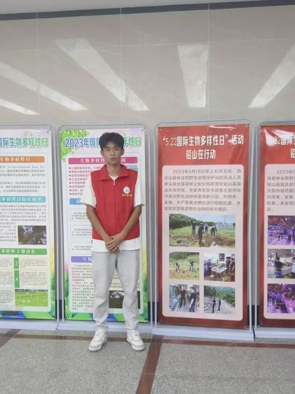 22级机电一体化技术大专11班的张文鑫同学,现担任班级团支书,也是一名入党积极分子。暑假回到家乡后,第一时间到达了铅山县林业局参加维护生态环境,宣传森林防火等志愿服务活动。他在步行道、绿化带以及河边清理垃圾,维护生态环境;同时也向周边的居民宣传保护生态环境、预防森林防火安全科普等相关知识,呼吁父老乡亲不要乱扔烟头、禁止燃放烟花爆竹等,预防森林火灾的发生!