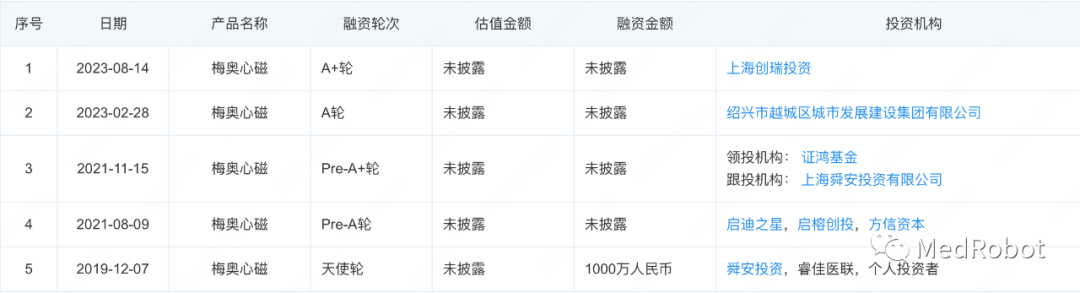 2023年8月14日消息,近日绍兴梅奥心磁医疗科技有限公司(简称为:梅奥心磁)完成由创瑞投资领投的A+轮融资。这是继今年2月绍兴市越城区城市发展集团独家投资的A轮融资后,梅奥心磁获得的新一轮融资。