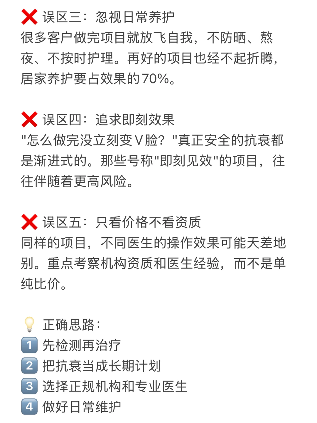 \"怎么做完没立刻变V脸?\"真正安全的抗衰都是渐进式的。那些号称\"即刻见效\"的项目,往往伴随着更高风险。