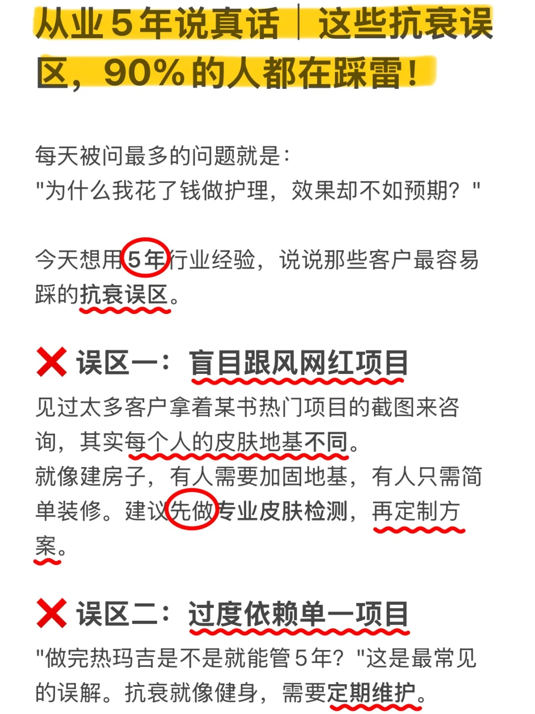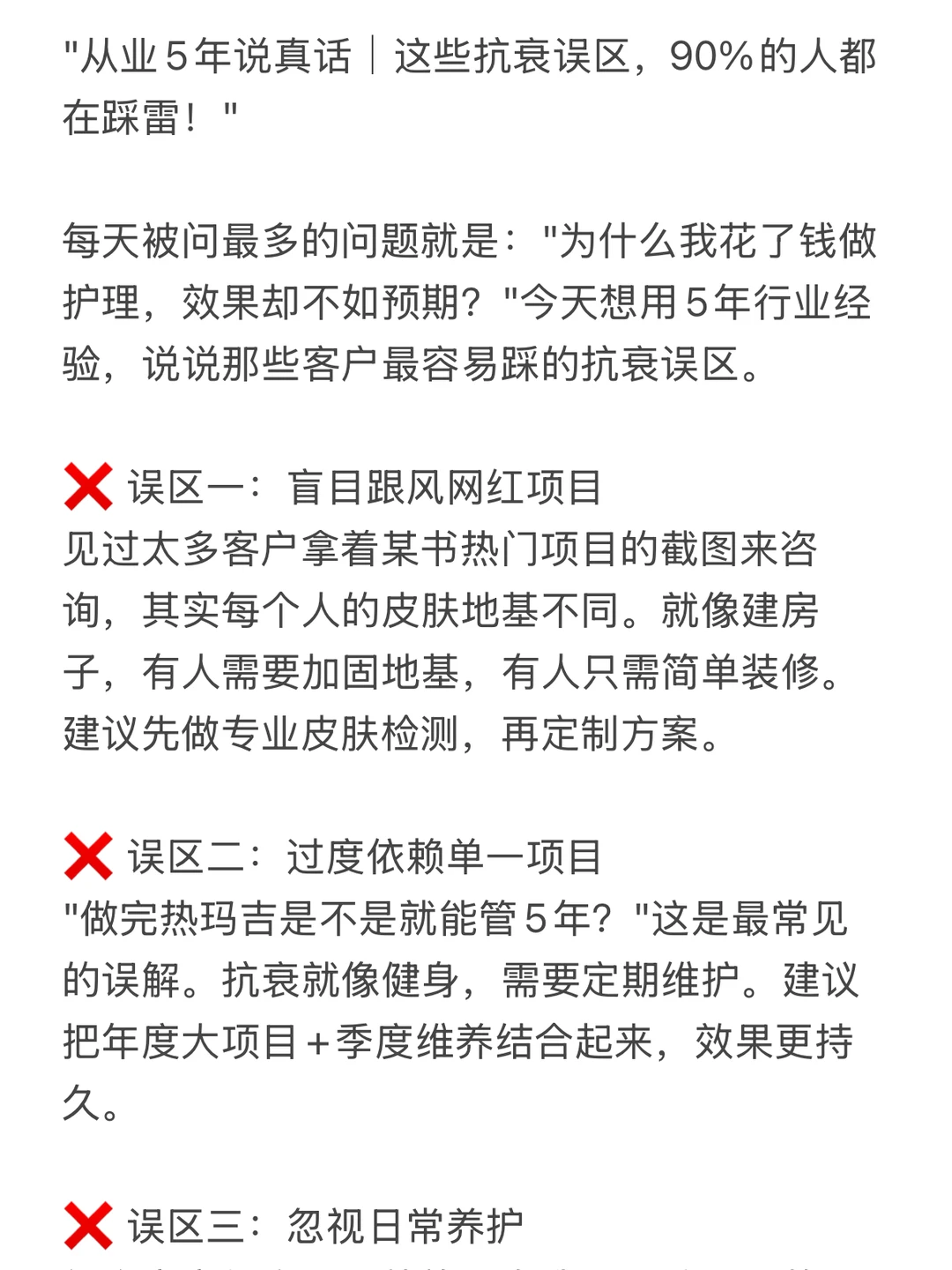 每天被问最多的问题就是:\"为什么我花了钱做护理,效果却不如预期?\"今天想用5年行业经验,说说那些客户最容易踩的抗衰误区。