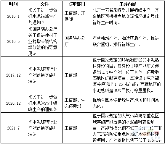 表1:2016年以来水泥行业供给侧改革主要政策梳理