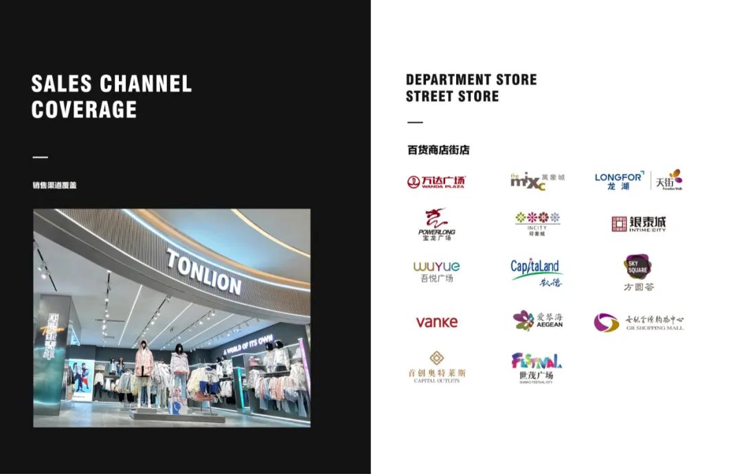 品牌现有旗舰店:济南万虹广场店、济南弘阳广场店、天津滨海新区解放路店、天津新区滨海上海道店、泰安财源街旗舰店、菏泽步行街店、菏泽东方红店、德州步行街店、临沂解放路店、济南西市场店、济南太平洋店、泰安爱琴海店、泰安五矿店等
