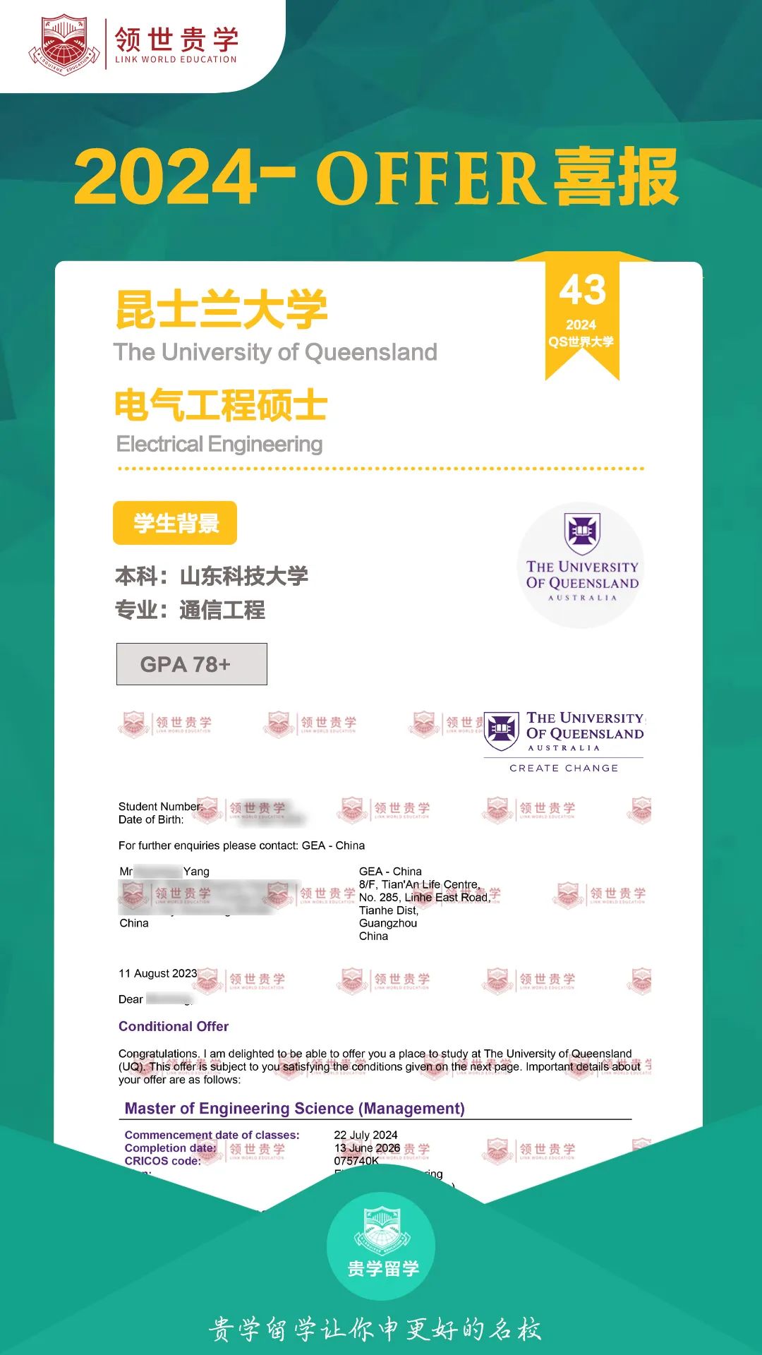 【Offer录取分享】昆士兰大学 电气工程硕士录取