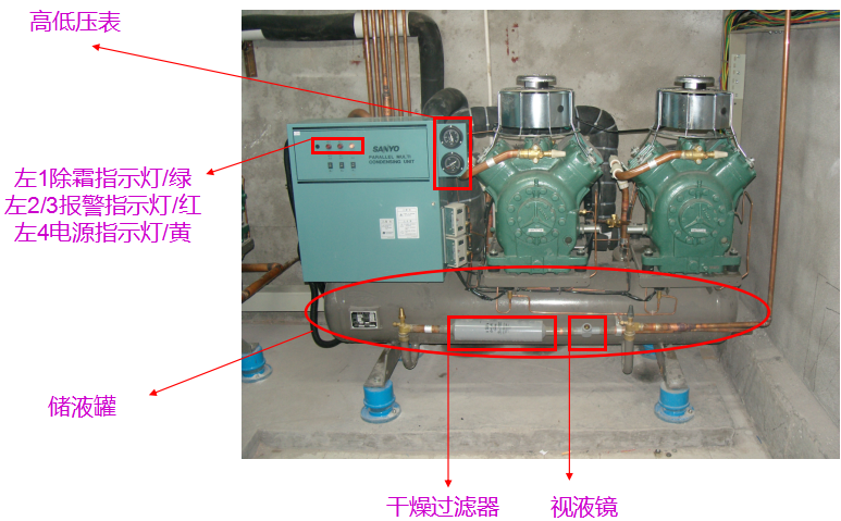 经常观察压缩机运行状态;检查其排气温度,在换季运行时,要特别注意系统的运行状态,及时调整系统供液量和冷凝温。