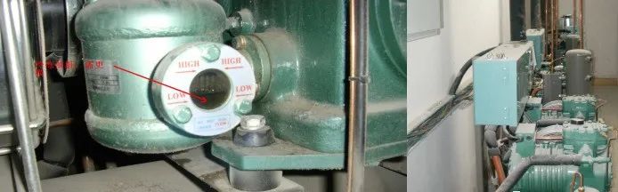 冷冻油位处于视油镜上下限之间,油不混浊;