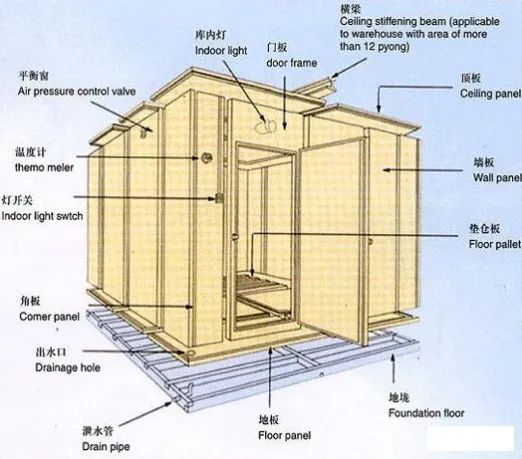 冷库顶不能堆放杂物:冷库顶部为非承重设计,而且有冷媒配管及电气管线布设,不允许用户堆放物品,以免造成意外损坏。冷库灯开关人走灯熄。