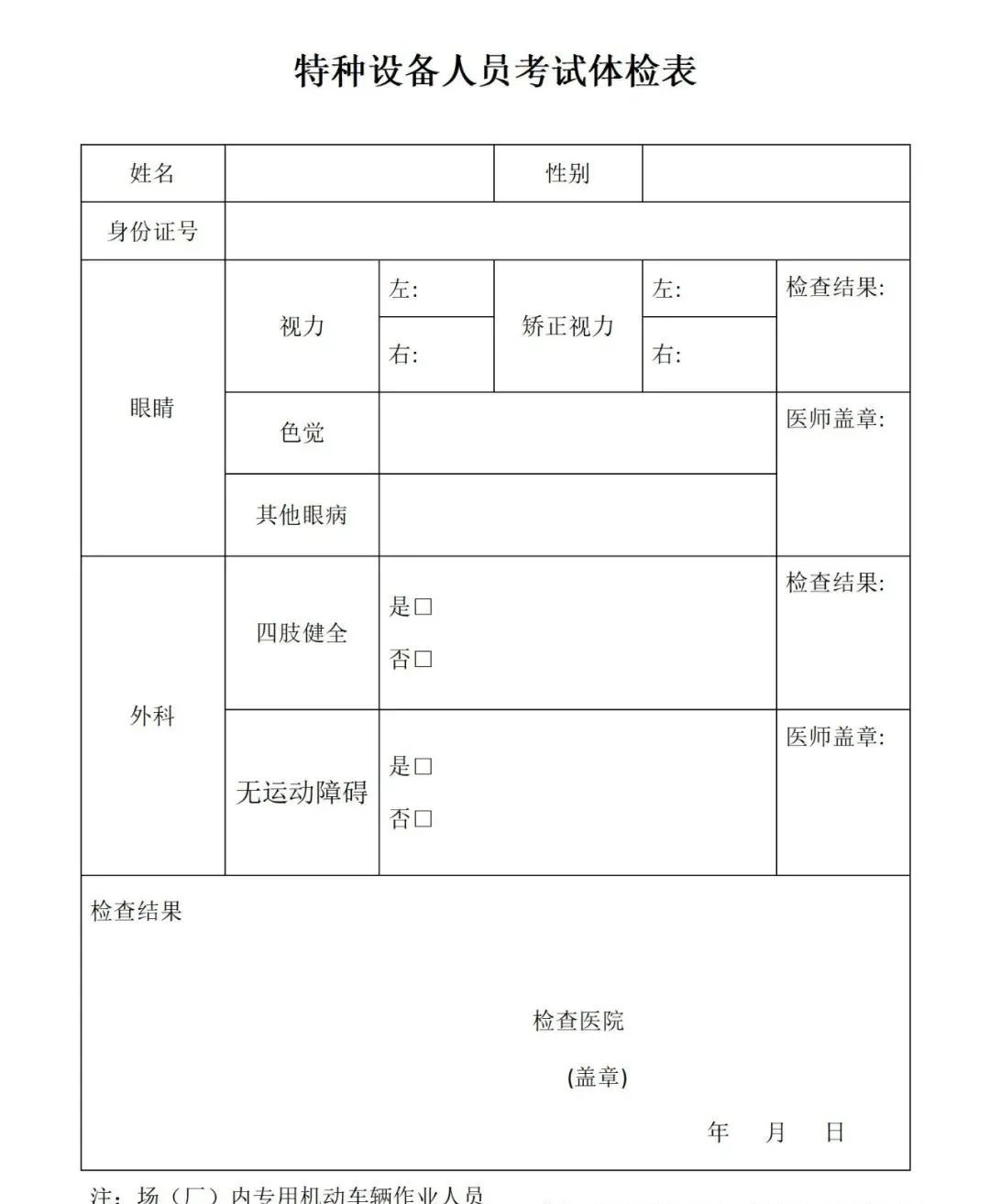 附件二:场(厂)内专用机动车辆作业人员体检表(眼科+肢体)