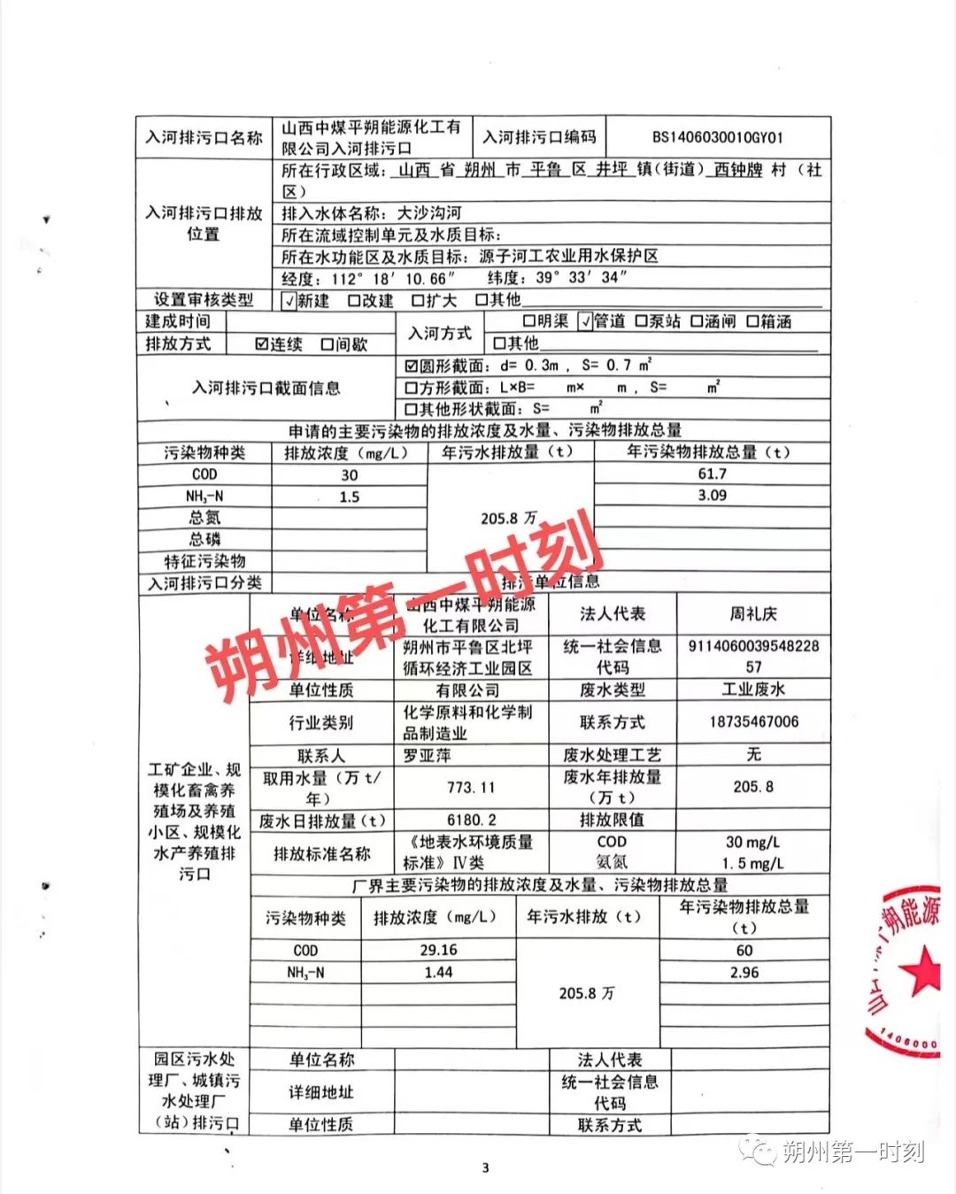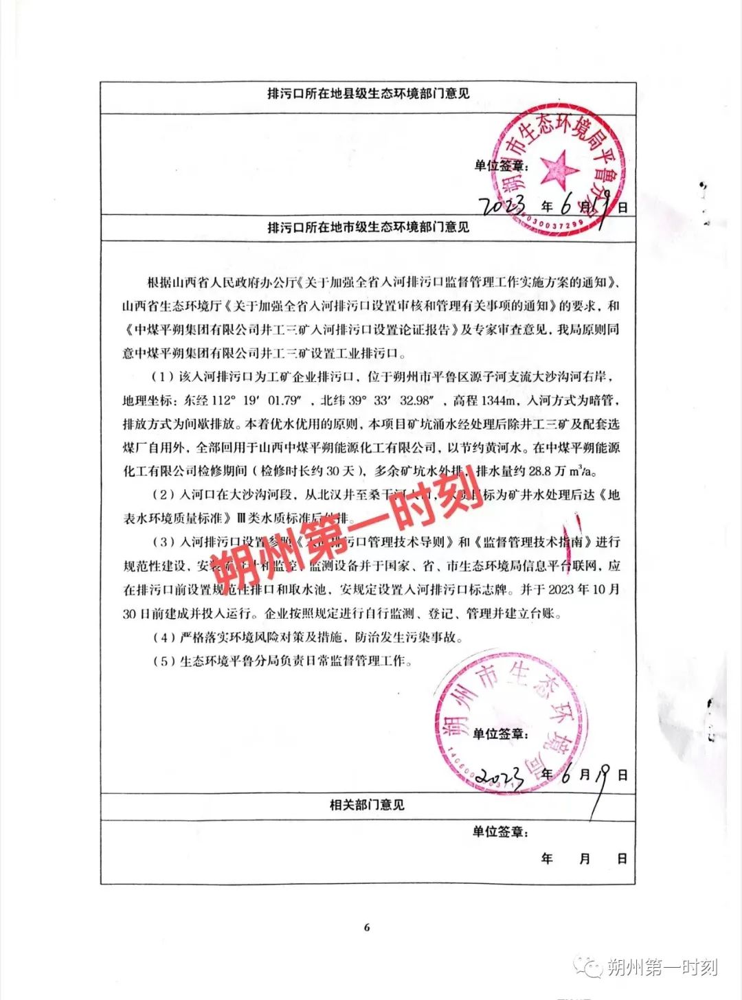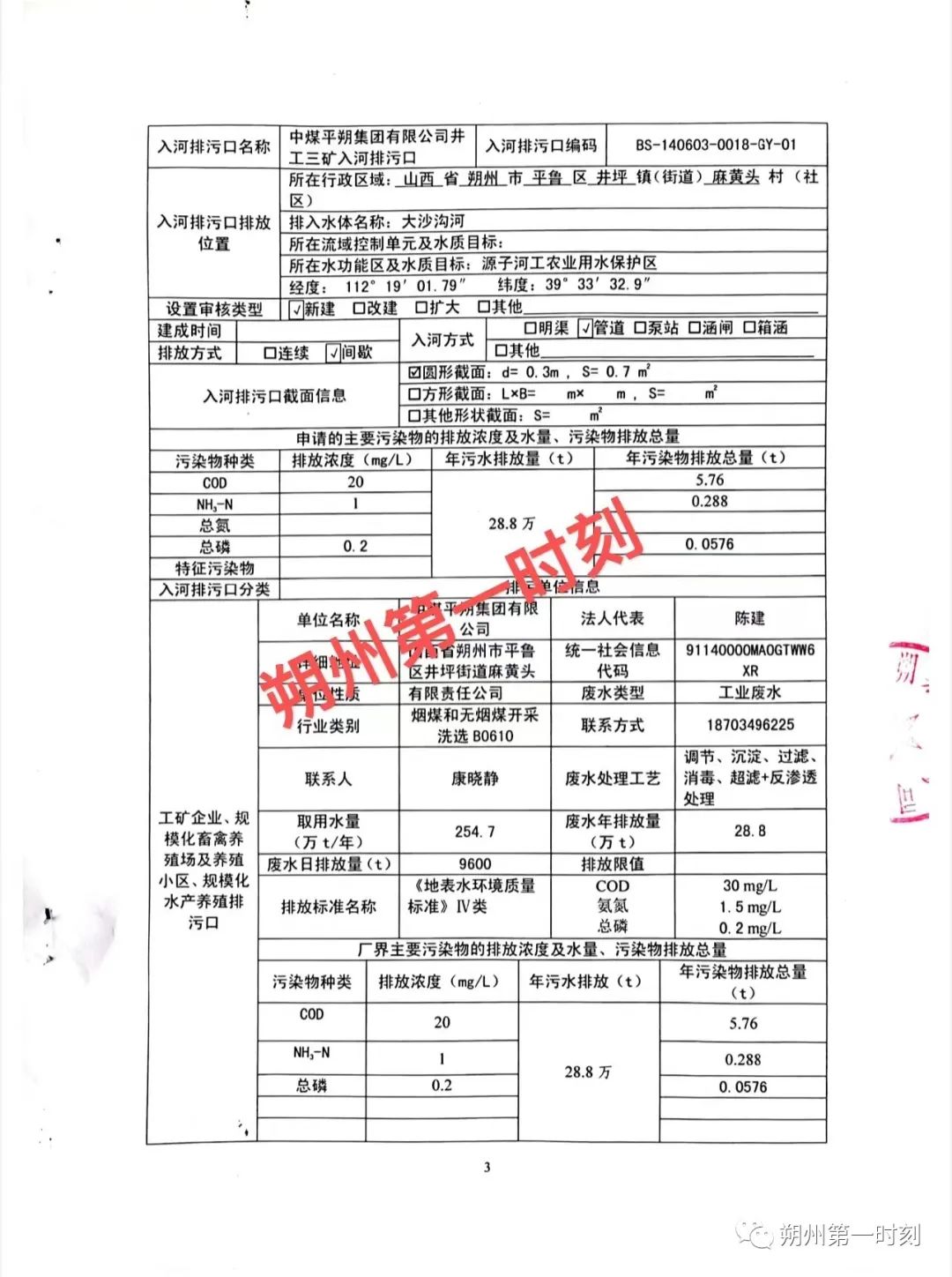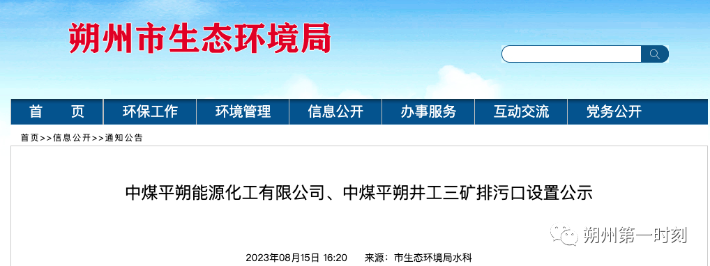 中煤平朔能源化工有限公司、中煤平朔井工三矿排污口设置公示